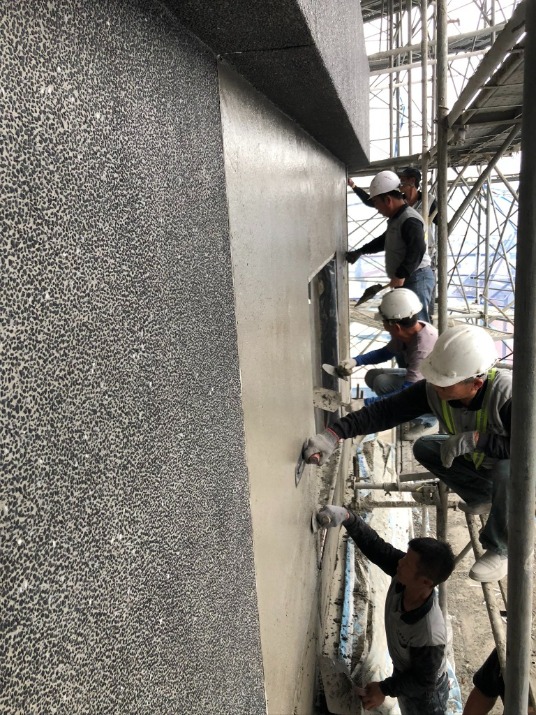 施工材料:1分黑珍珠石/泰固美特耐本色鏝石泥/